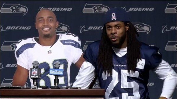 Seattle Seahawks stars Doug Baldwin and Richard Sherman had a little at the podium today, mocking the NFL of their hypocritical stances when it comes to player safety, alcohol use and fining their teammate $100,000 for not speaking to the media. Watch the video below: